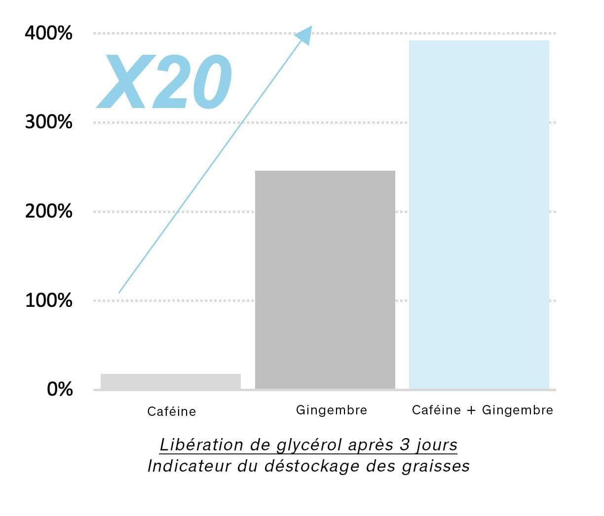 RESULTADO: 20 veces más eficaz que la cafeína sola en la eliminación de grasas(3)