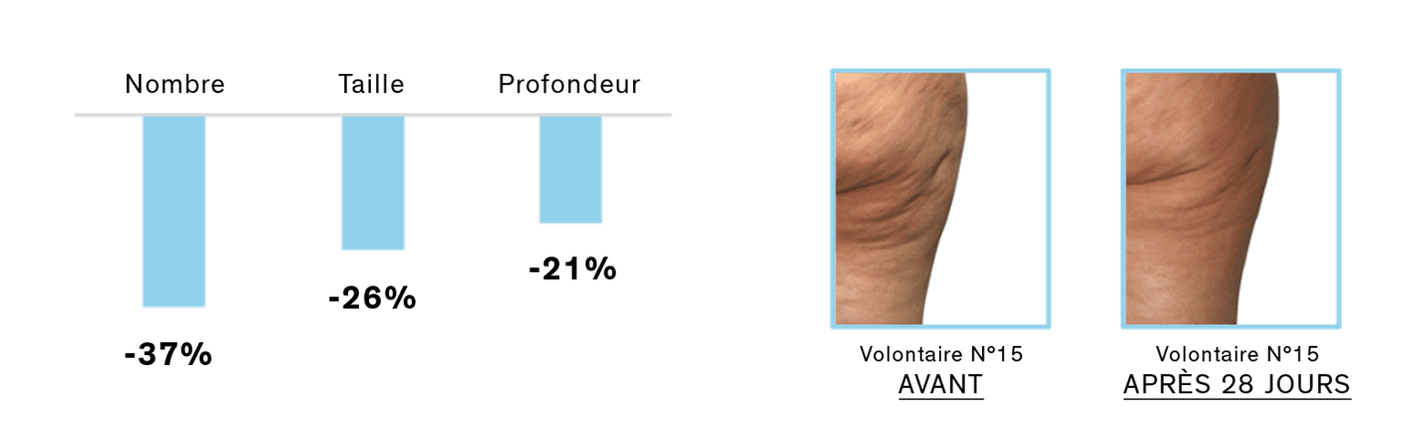 RESULTADO: el aspecto de la piel de naranja se reduce visiblemente, la piel se alisa y se tonifica"